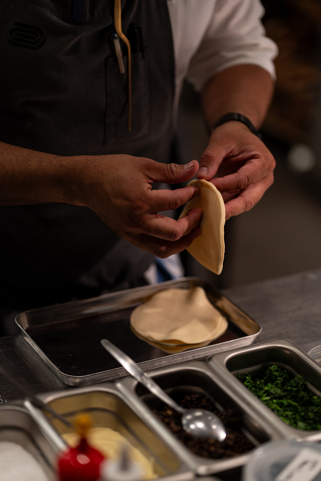 Cavolo Nero and Manzanilla Olive Empanadas, Whipped Goat Cheese