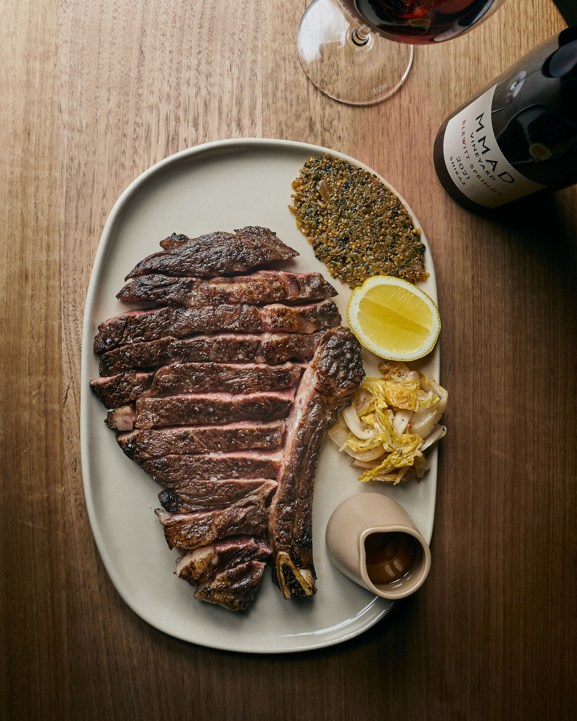 600g Grilled O’Connor Rib Eye, Fermented Napa Cabbage, Split Pepper Sauce