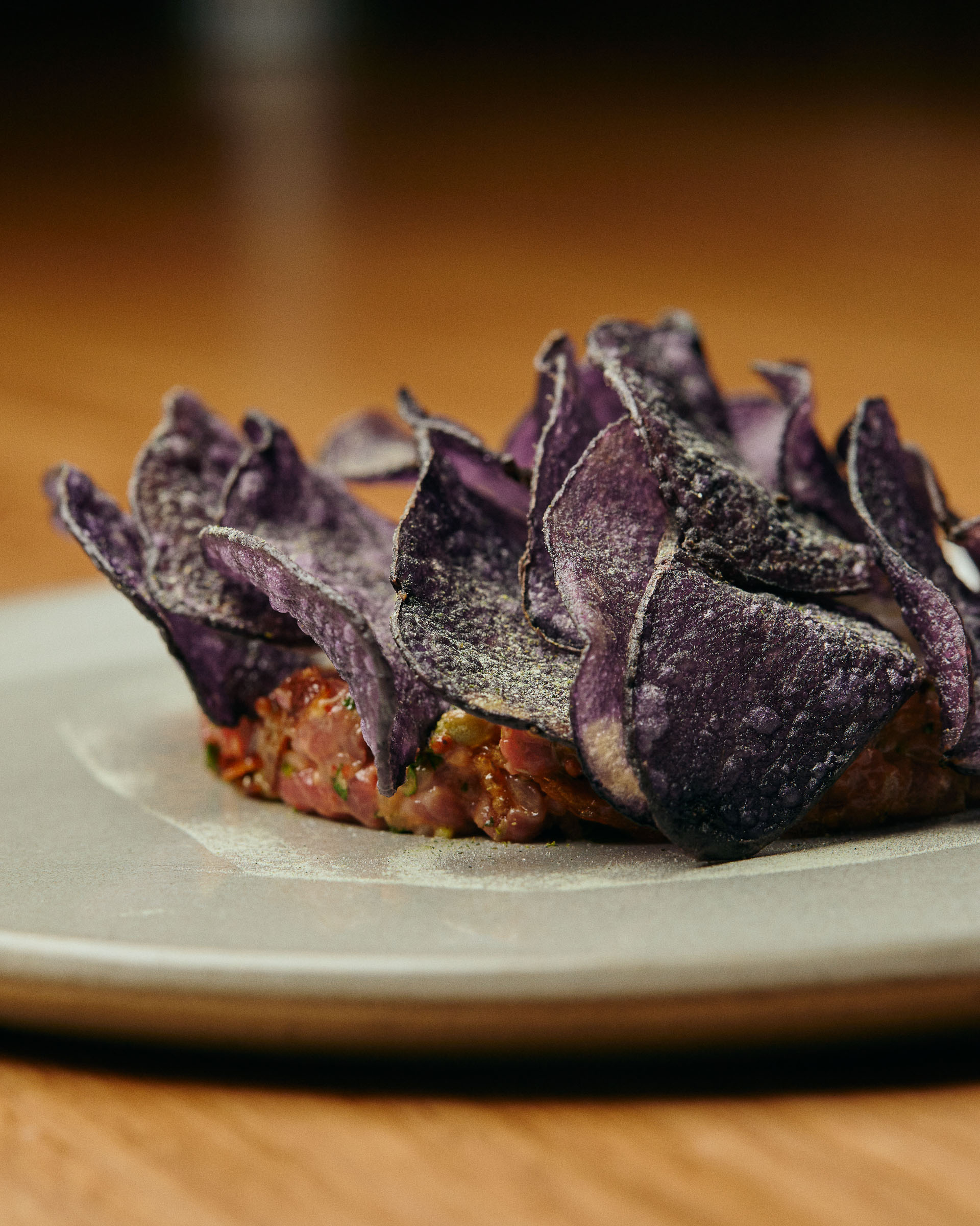 Wagyu Tartare, Lemongrass Mayonnaise, Fermented Chilli, Midnight Pearl Potato Crisps